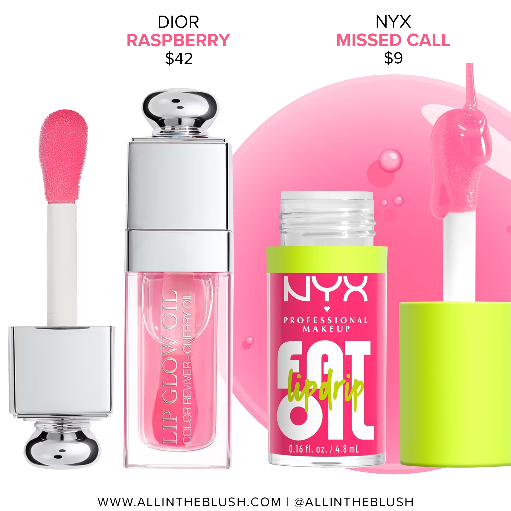 If you’re looking for a budget-friendly alternative for Dior’s 007 Raspberry Lip Oil that offers a similar glossy, hydrating effect, NYX “Missed Call” Lip Oil might be just the one for you! According to their shade descriptions, Dior’s Raspberry is described exactly like it’s name applies – a raspberry hue. While NYX’s “Missed Call” is described as a sheer pink. Both products also feature the same doe-foot applicator, but Dior’s is described as “chubby” with a crease that bends, while NYX’s is stiffer.
