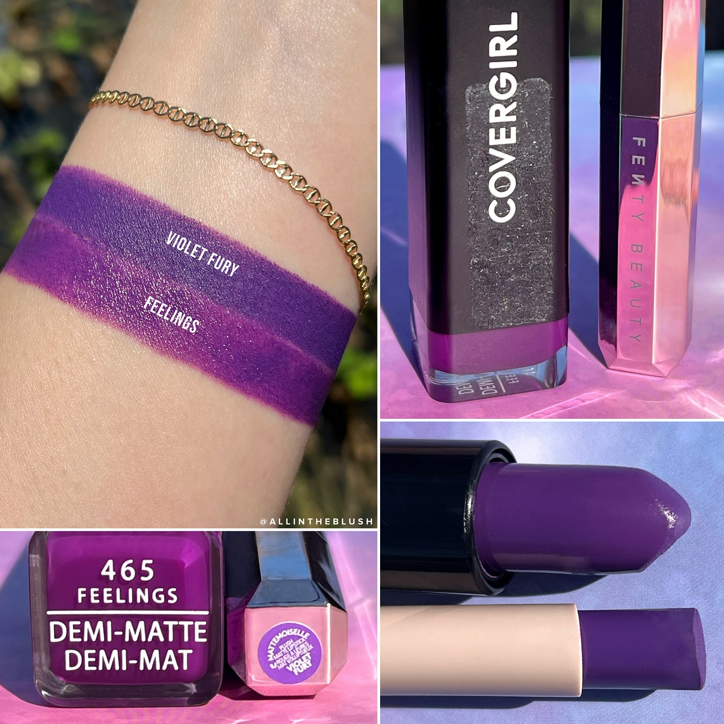 Fenty Beauty’s Mattemoiselle Plush Matte Lipstick offers a weightless, matte finish with high-impact color and a comfortable feel. The shade “Violet Fury” is described as cool-toned, medium-dark purple with a soft-matte finish.