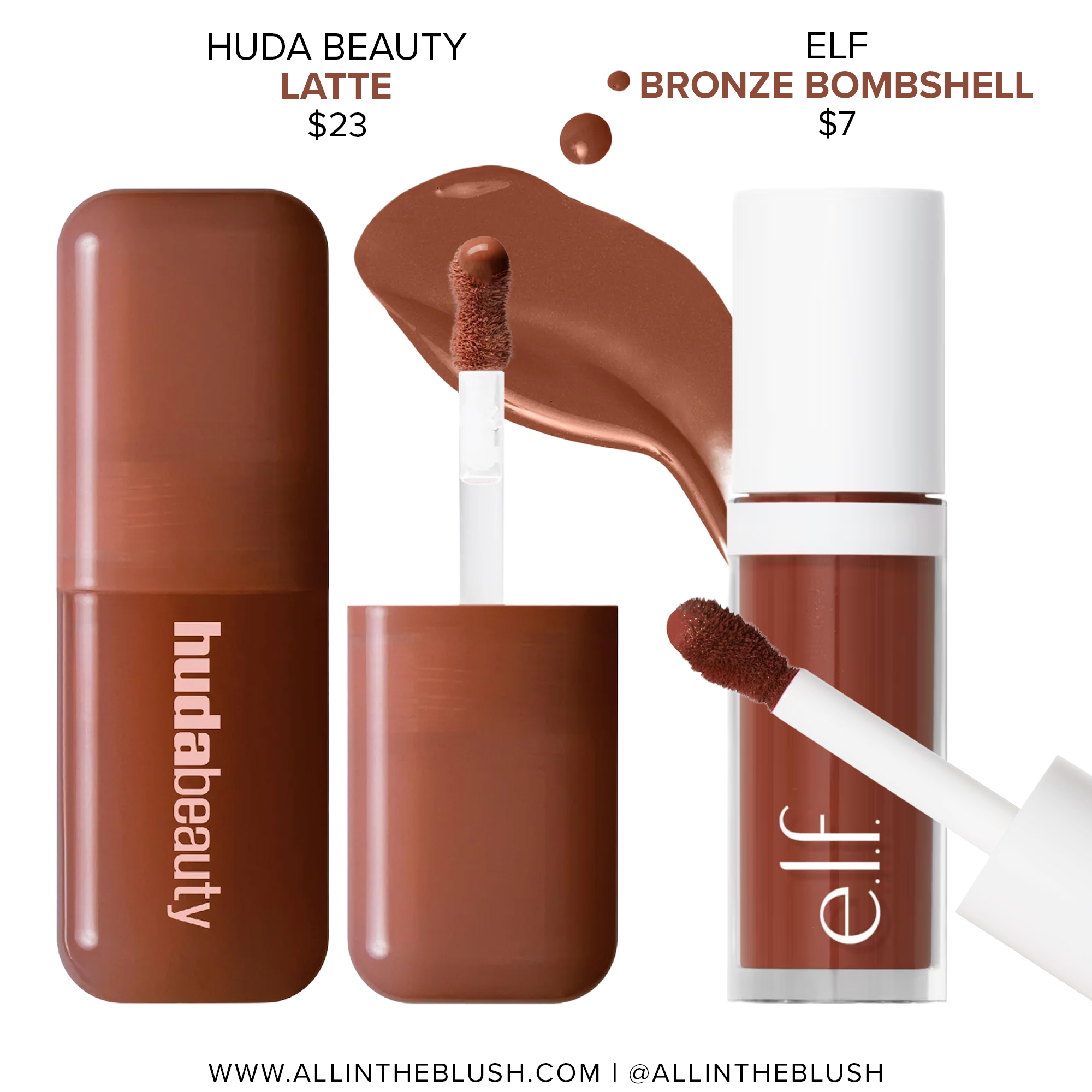 e.l.f. Cosmetics Camo Liquid Blush in Bronze Bombshell is a highly recommended alternative for Huda Beauty’s Blush Filter in Latte, offering a similar warm, bronzy-brown tone at a fraction of the price. While Latte delivers a soft, sculpted glow with a high-end finish and user-friendly blendability, Bronze Bombshell matches it with rich pigmentation, a dewy finish, and long-lasting wear—all for just $7.