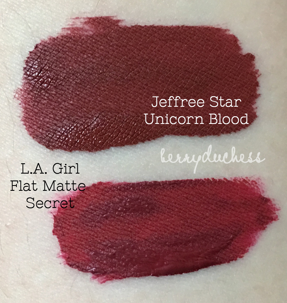 Previous Image Next Image Jeffree Star Unicorn Blood Velour Liquid Lipstick Dupes (Source: @berryduchess) Jeffree Star Unicorn Blood Velour Liquid Lipstick Dupes
