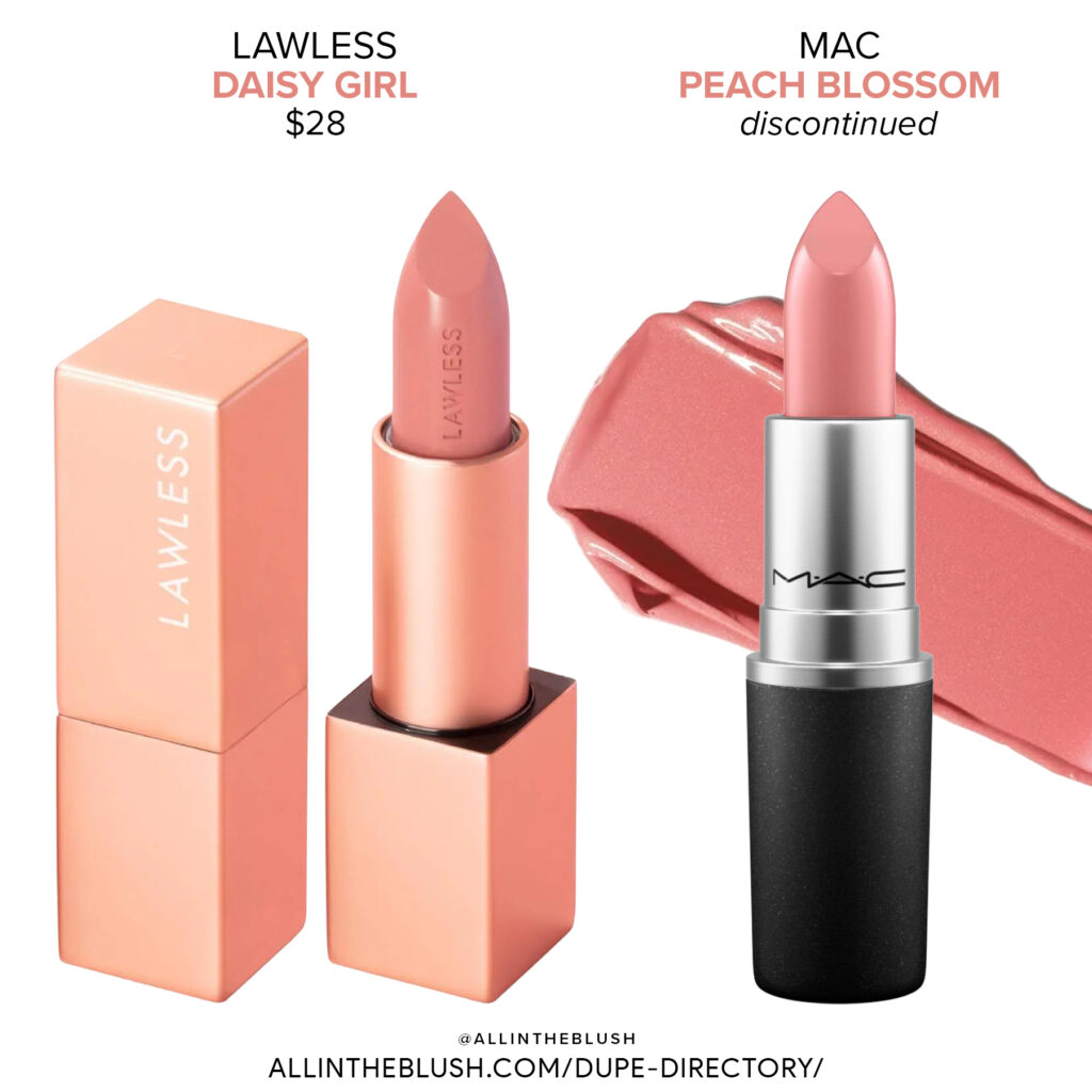 mac peach blossom and lawless daisy girl lipstick dupes