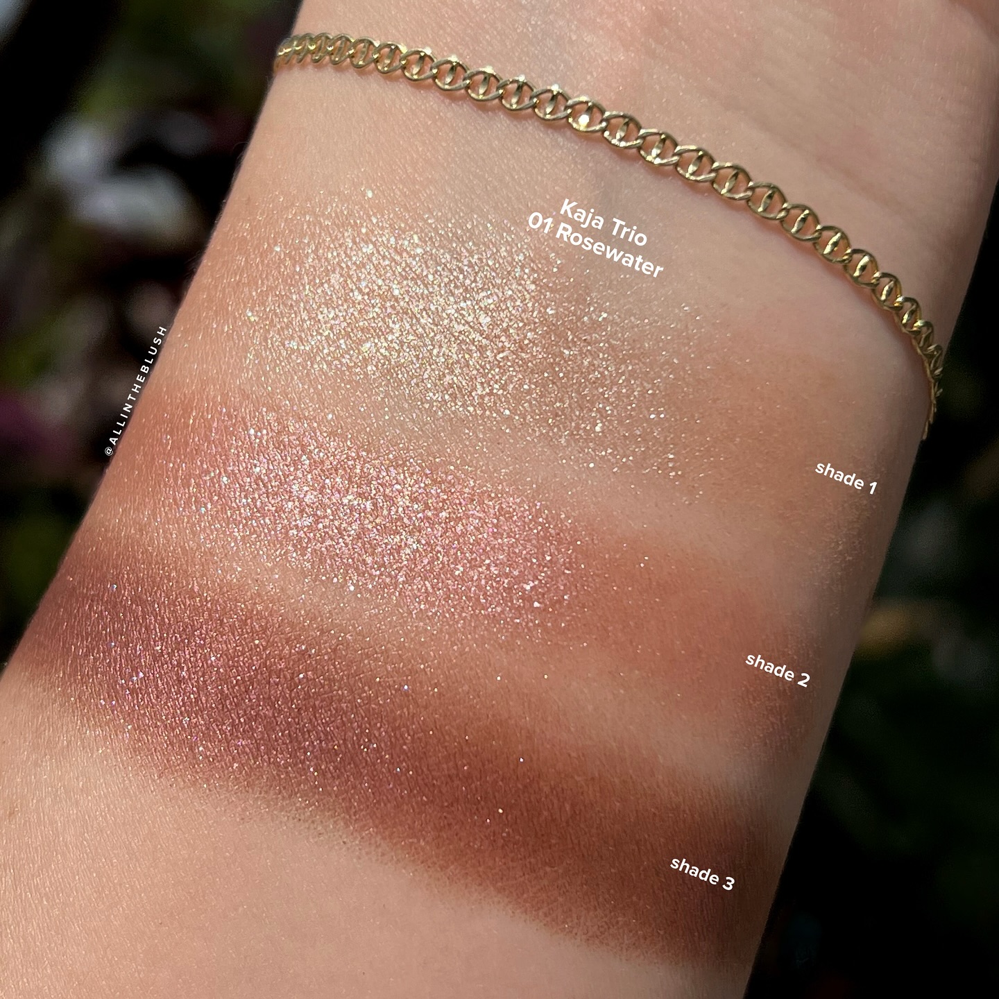 Of the 13 trio stacks, Kaja Beauty’s Rosewater might be my favorite of the bunch. Each of the shades can be worn alone; or as is – without any need for a matte shadow.